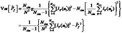 對(duì)式所示的失效概率估計(jì)值求數(shù)學(xué)期望和方差分別有以下兩式成立。