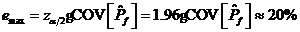 如果將失效概率估計(jì)值的變異系數(shù)設(shè)置為0.1,則在給定95%的置信水平的情況下失效概率相對(duì)誤差的極限值為[5]