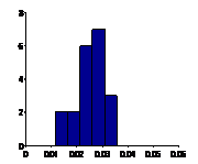 圖6.10 失效概率對x1標(biāo)準(zhǔn)差的可靠性試驗靈敏度估計值方差的直方圖 |