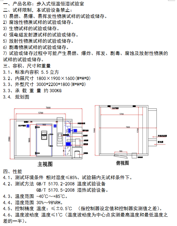 步入式恒溫恒濕試驗室根據用戶要求,參照GB2423[1].02高溫試驗方法、GB2423[1].01低溫試驗方法、GB2423[1].03恒定濕熱試驗方法、GB2423[1].04交變濕熱試驗方法相應技術條件制造。是新產品研制、樣機試驗、產品合格鑒定試驗全過程必不可少的重要試驗手段。主要為航天、航空、石油、化工、軍事、汽車(摩托車)、船舶、電子電工、電氣、通訊等科研及生產單位提供溫濕度變化環(huán)境,供用戶對整機(或部件)、電器、儀器、材料等作溫濕度試驗,以便考核試品的適應性或對試品的行為作出評價。